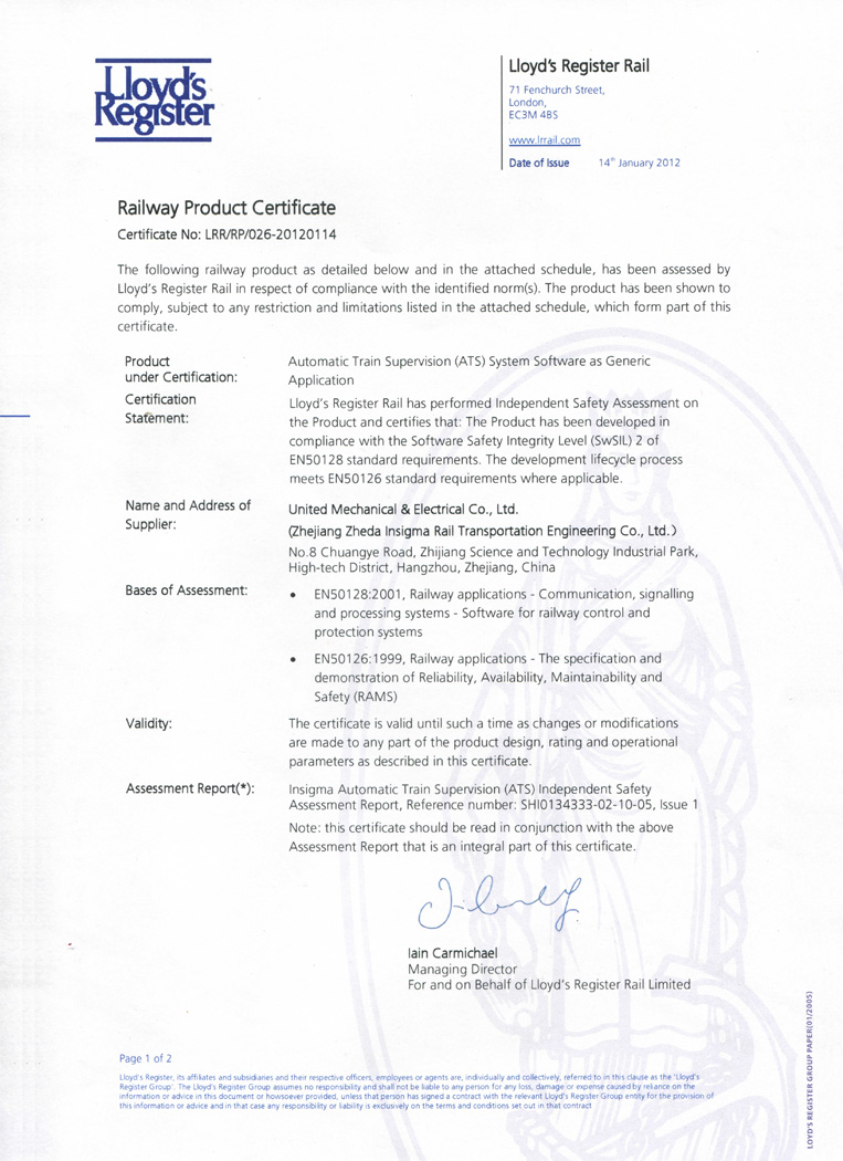 英國(guó)勞氏鐵路CBTC系統(tǒng)認(rèn)證